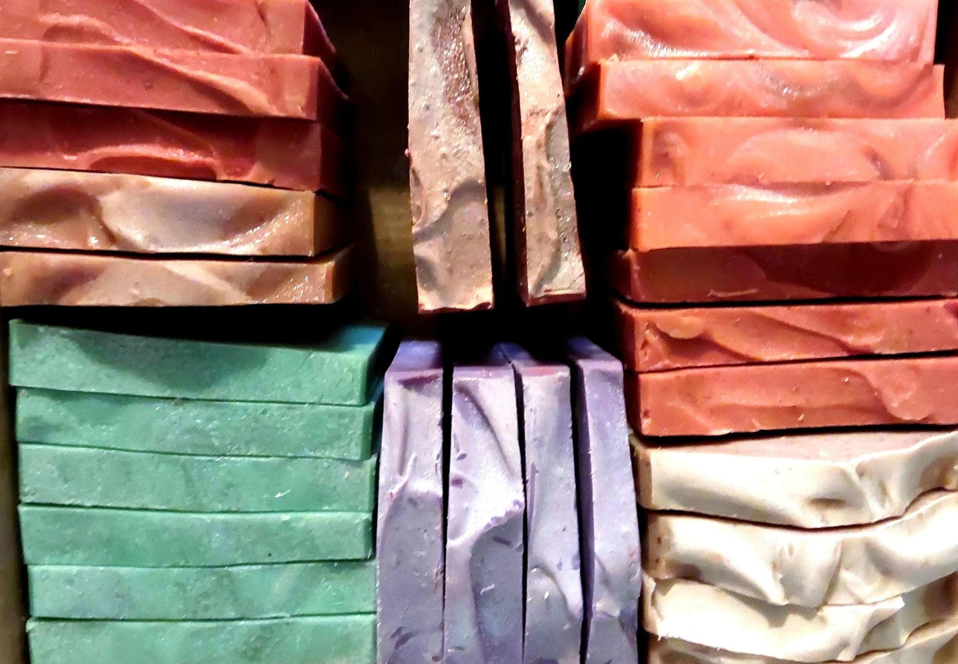 You'll receive a great assortment of our cold process soap bar sliver slices/odds and ends. Slices are a good size and smell wonderful.