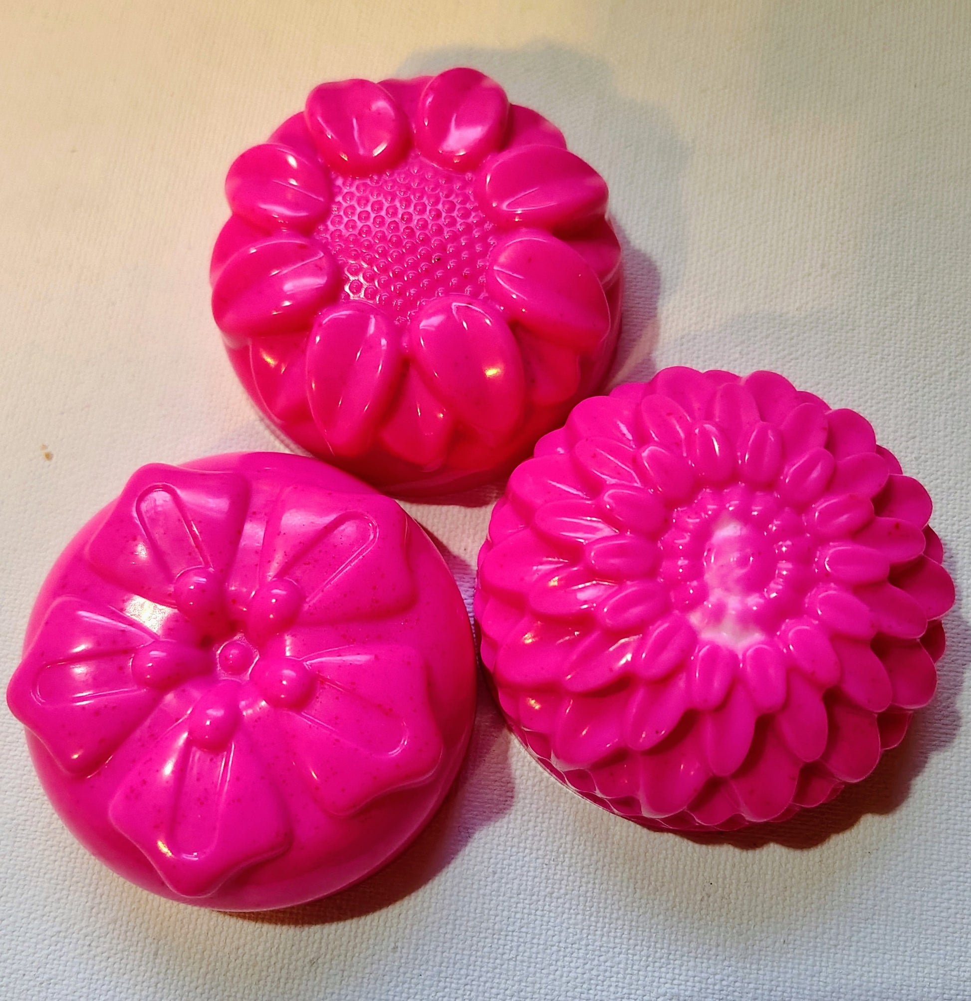 Three flower Goat's Milk bars, in your choice of scent. Floral round bars are 2 oz. each, 6 oz. total.