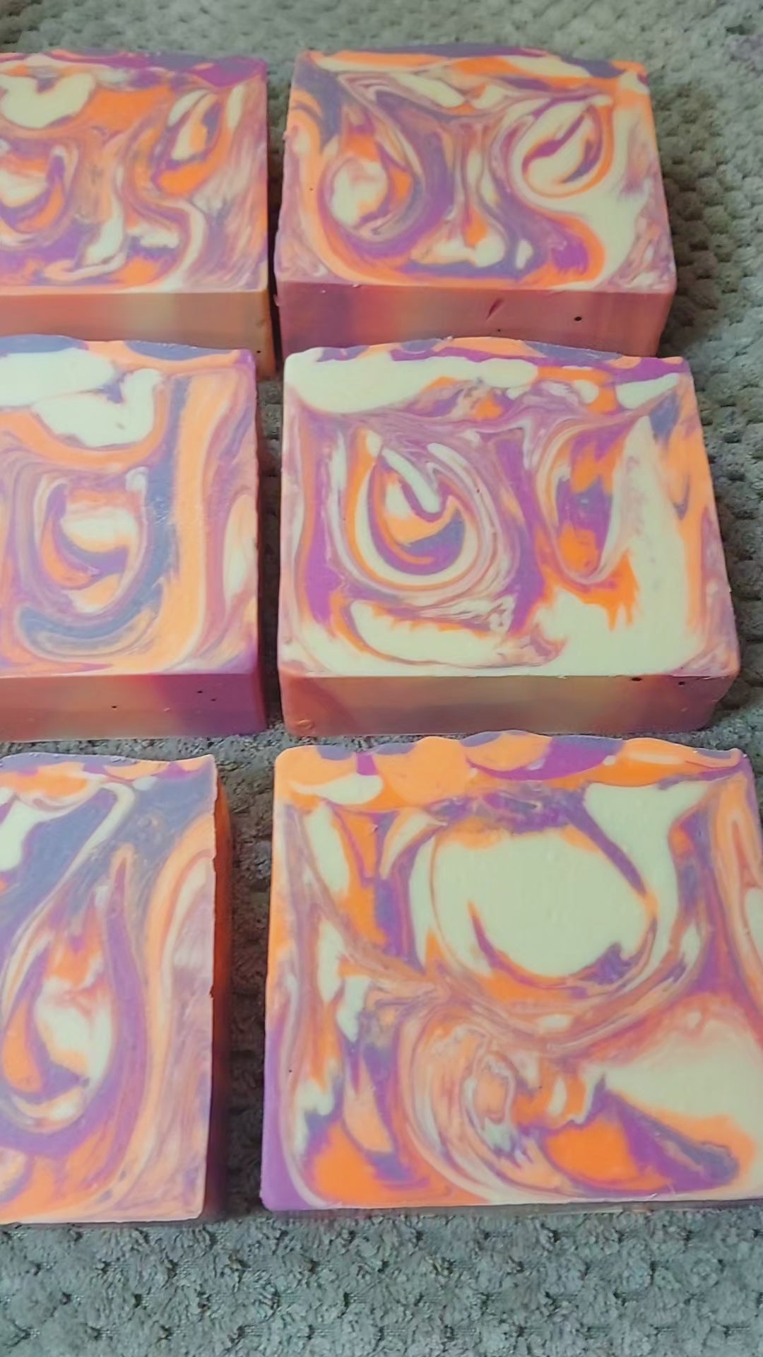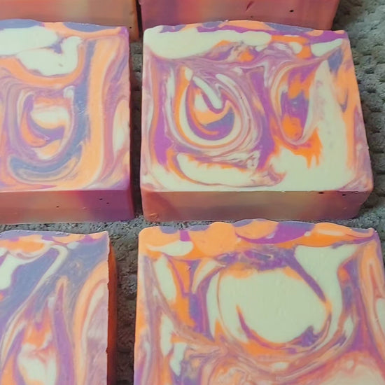 Lavender Orange, A vibrant swirl of calm and citrus. These handcrafted bars bring together the relaxing essence of lavender with the bright, uplifting aroma of sweet orange.