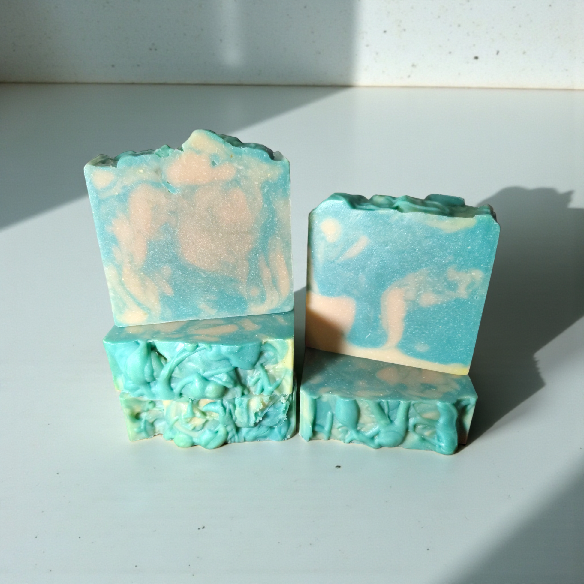 Rainforest Goat's Milk Soap. Scent notes are Bergamot, Tarragon, Lime, Green Amber, Litsea Cubea.